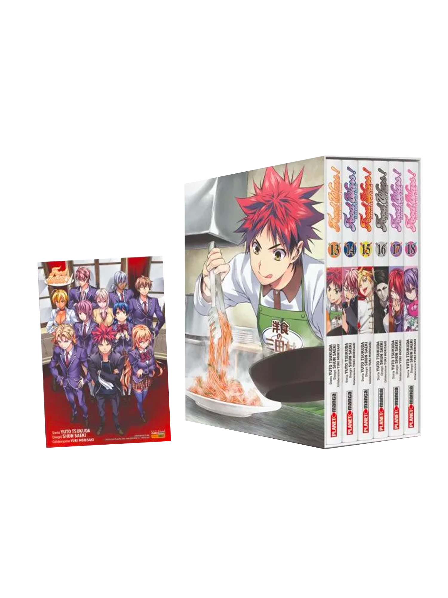 Nel terzo cofanetto di Food Wars, che raccoglie i volumi 13-18, si vivranno due momenti chiave per la storia non solo di Soma Yukihira ma anche dell’intera Accademia Totsuki. Il primo è la proclamazione del vincitore delle selezioni autunnali, il secondo, ancora più importante e sconvolgente… lo scoprirete leggendo le più di 1100 pagine qui raccolte! In omaggio un’esclusiva cartolina disponibile solo con la prima tiratura del cofanetto!