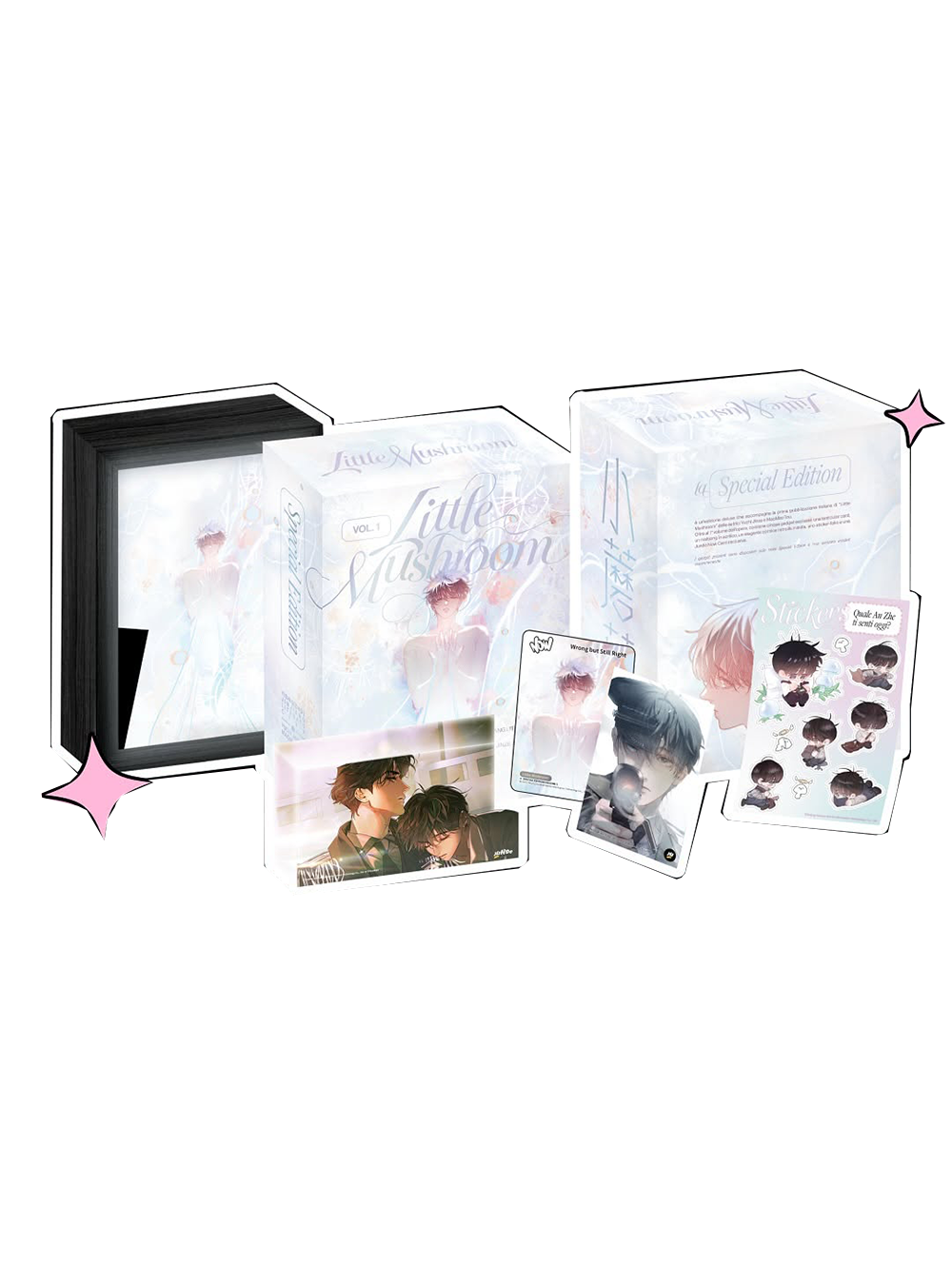 Questa Special Edition esclusiva trasforma la lettura in un'esperienza immersiva: oltre al Volume 1 con Copertina Variant, il box contiene tesori unici come una magnifica cornice retroilluminata per esporre l'arte della serie, un prezioso blocco acrilico, una lenticular card cangiante, uno sticker sheet e la Jundo Now Card. Un must-have assoluto per i fan del genere Sci-Fi e Boys' Love.