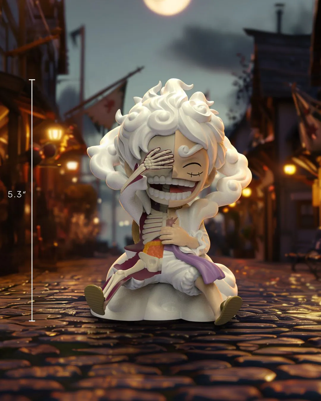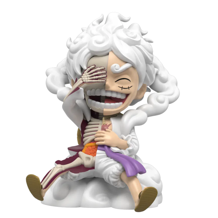 Direttamente dalla forma più folle e potente di Luffy, arriva questa incredibile statua della serie Wanted di Mighty Jaxx, che unisce lo stile chibi alla classica sezione anatomica a metà. Raffigurato in modalità Gear 5, Luffy sprigiona tutta la sua energia con la sua iconica risata e le nuvole gommose che lo circondano, mentre la sezione tagliata rivela uno spaccato del suo interno – frutto del geniale design di Mighty Jaxx.
