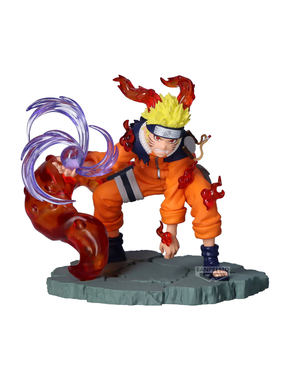 Naruto sprigiona tutto il suo potere nella spettacolare figure firmata Banpresto! Rappresentato in una posa dinamica, con il Rasengan pronto all'attacco e avvolto dal chakra infuocato di Kurama, questa statua cattura l'intensità del giovane ninja in uno dei suoi momenti più iconici. Dettagli curati, colori vibranti e base a tema rendono questa figure un pezzo imperdibile per ogni collezionista e fan di Naruto Shippuden.